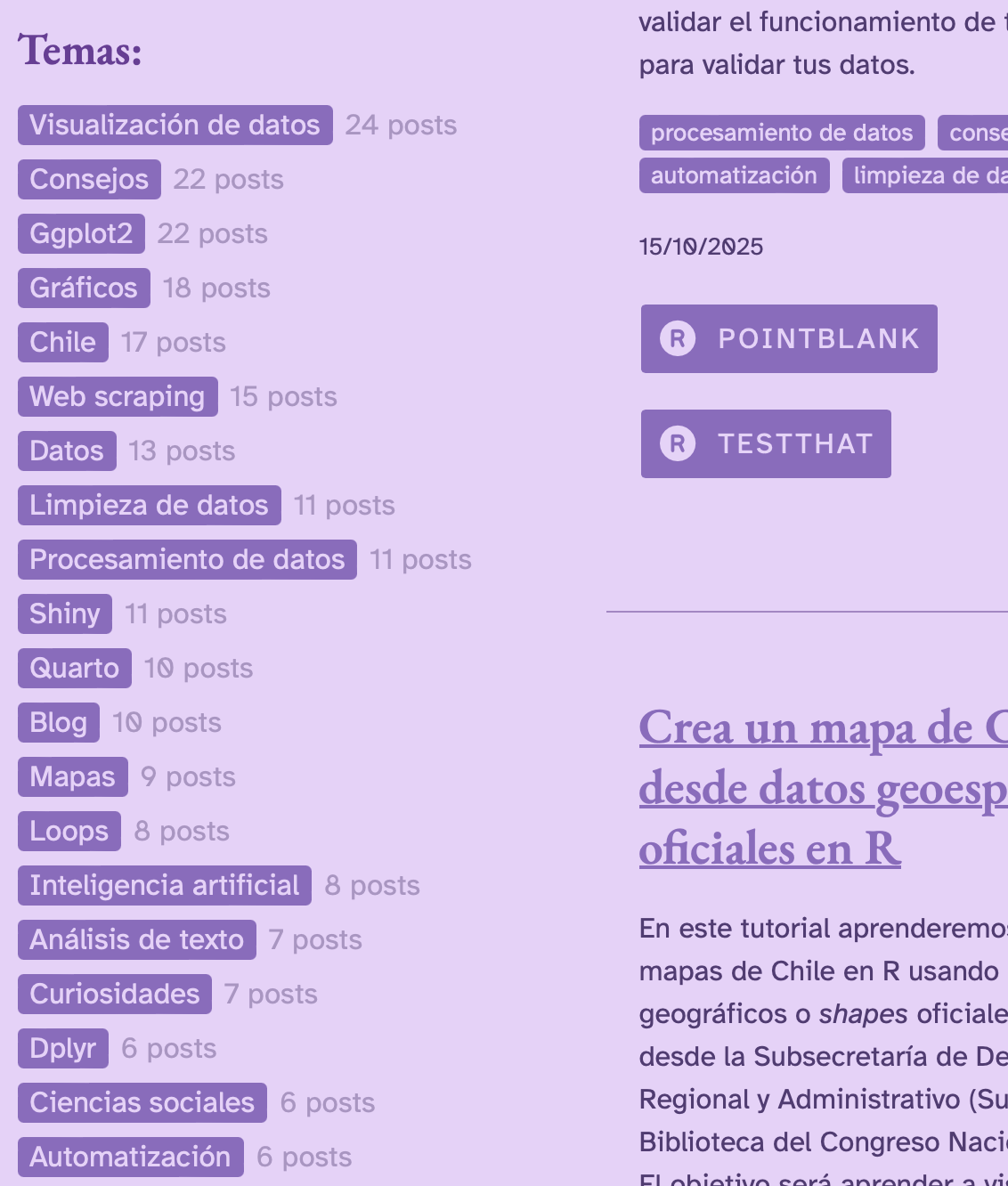 Como se ve en la foto anterior, también he ido agregando más botones con enlaces relacionados a cada post, incluyendo snippets de código para quienes solo quieren copiar y pegar en R (válido).