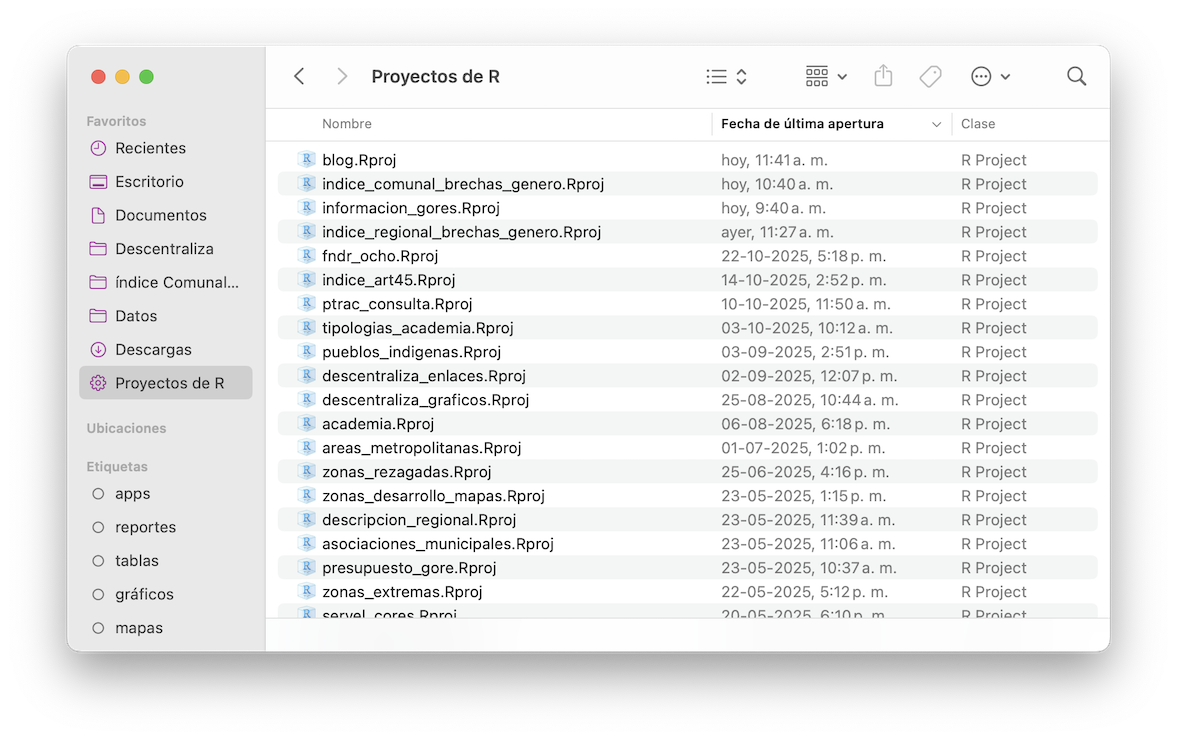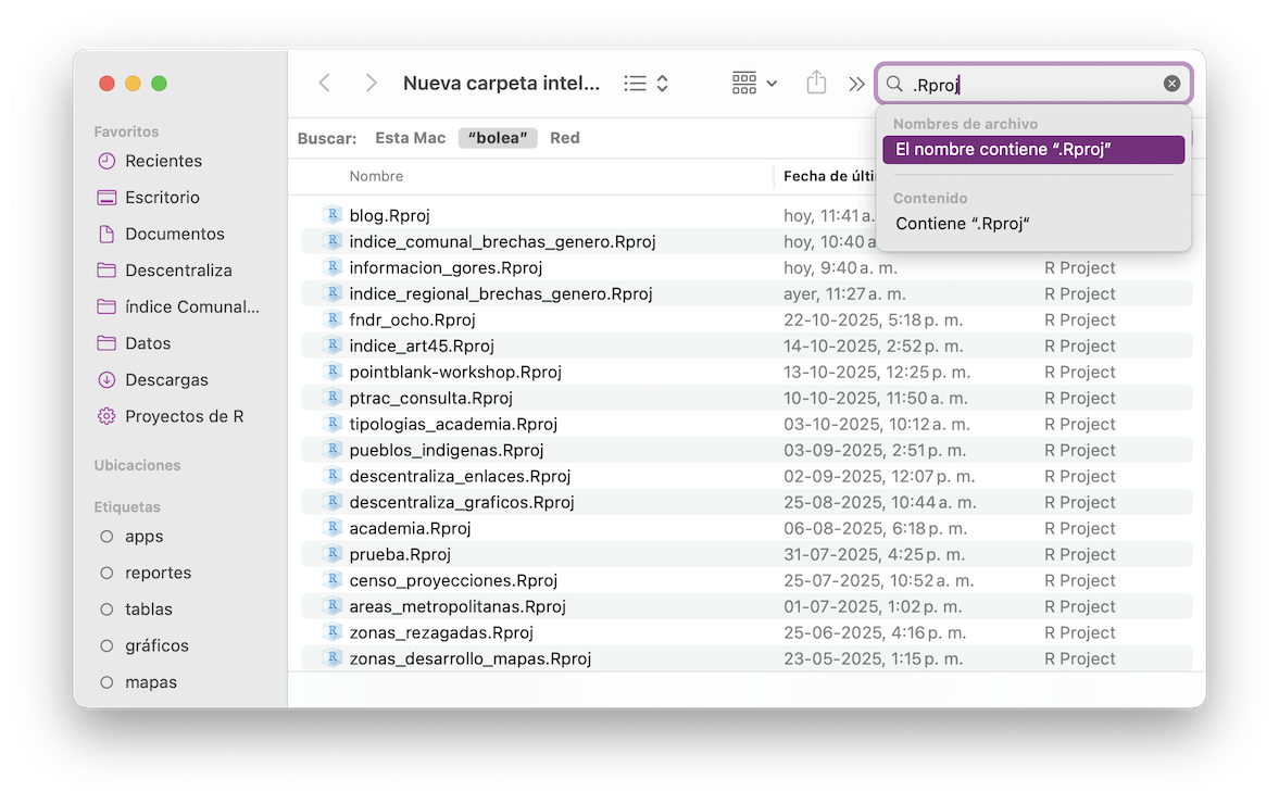 Crea una carpeta inteligente con todos tus proyectos de R en Mac