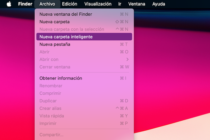 En el Finder, vamos a Archivo y creamos una nueva carpeta inteligente.