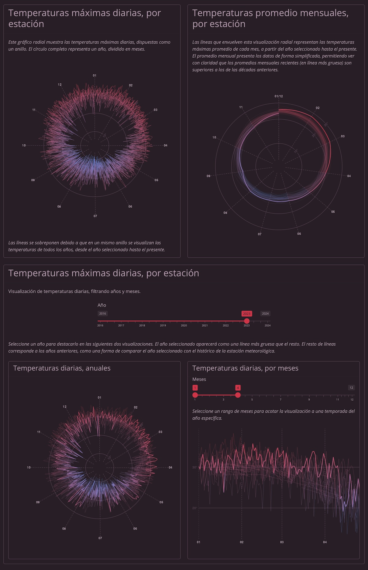 Visualizador de datos de temperaturas extremas en el país. Permite consultar rápidamente datos históricos para obtener gráficos que revelan los cambios en temperaturas a través del tiempo en nuestro país. El objetivo es visibilizar los efectos del cambio climático por medio de los datos.