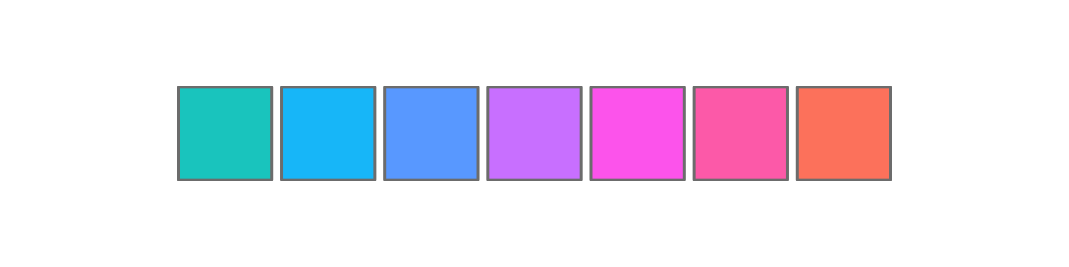 colorspace::rainbow_hcl(7, c = 100, start = 190, end = 380) |> swatch()