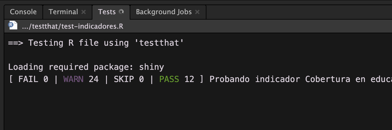 Si desarrollaste una aplicación Shiny medianamente compleja, dedicar unos minutos a crear tests te podrá asegurar que tu app funciona correctamente siempre. Cuando cambie el código o los datos, presionas Run tests y confirmas al 100% que todo está funcionando.