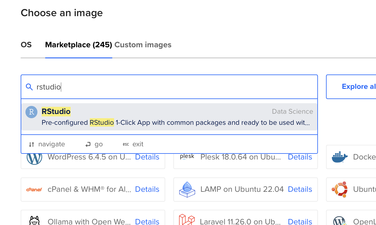 Buscar en el Marketplace la imagen RStudio