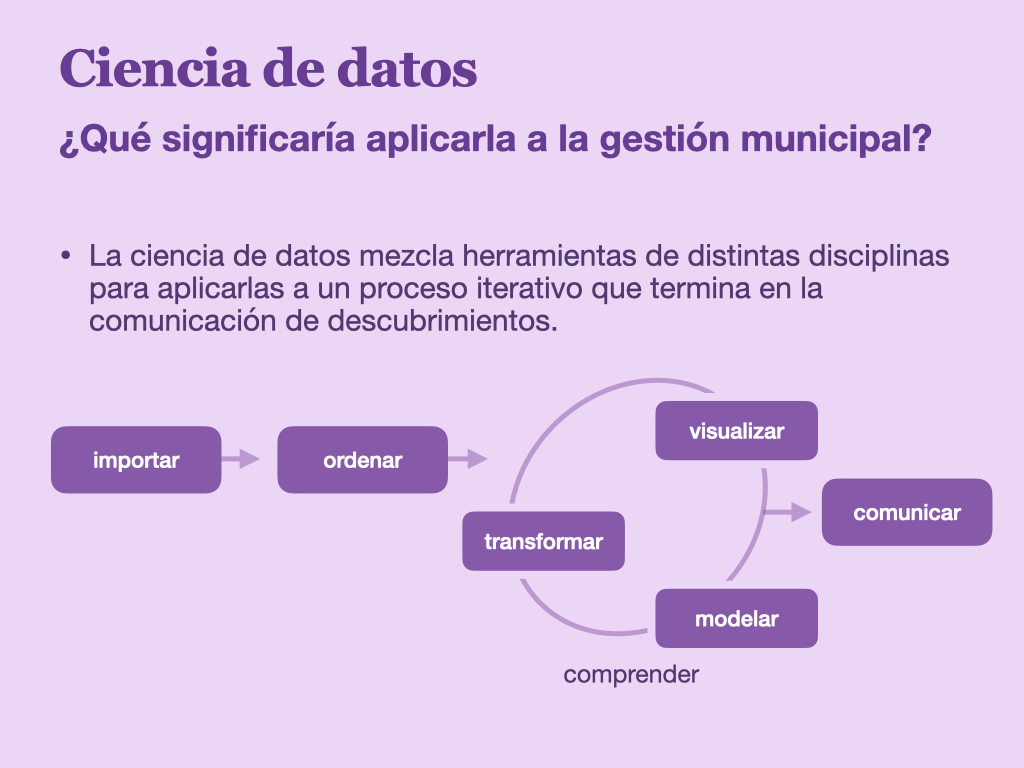 Presenté un taller dirigido a funcionarios y funcionarias municipales sobre Aplicación de la ciencia de datos en la Gestión Municipal, donde comuniqué la importancia de manejar herramientas de progamación para le análisis de datos, favoreciendo el desarrollo de herramientas reutilizables, reproducibles, transparentes y abiertas.